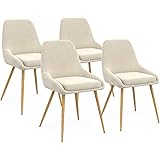 GrandCA HOME Juego de 4 Sillas de Comedor, Sillas de Comedor Tapizadas, Sillas de Cocina Nórdicas, Sillas Acolchadas con Patas de Metal, Cojines de Tela de Rombos, Beige-R