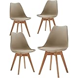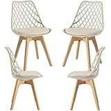 Baroni Home Silla de Comedor o de Trabajo con Patas de Madera, Silla Ergonómica con Cojín Integrado, 50X48X82 cm (Blanco, 4)