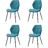 GrandCA HOME Juego de 4 Sillas de Comedor, Sillas de Comedor Tapizadas, Sillas de Cocina Nórdicas, Sillas Acolchadas con Patas de Metal, Cojines de Tela de Rombos, Lago Azul-R