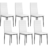 HOMCOM Pack de 6 Sillas de Comedor Modernas, Sillas de Cocina Tapizadas en Lino Sintético con Respaldo Alto y Patas de Metal, para Salón, Blanco