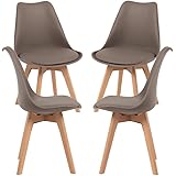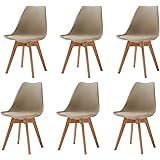 GrandCA HOME Pack de 6 Sillas de Comedor, Silla de Cocina con Patas de Madera de Haya, Sillas Tapizadas para Comedor, Salón y Cocina (Beige-6)