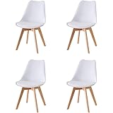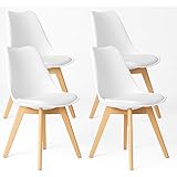 Baroni Home Silla de Comedor o de Trabajo con Patas de Madera, Silla Ergonómica con Cojín Integrado, 50X48X82 cm (Blanco, 4)