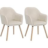 WOLTU 2X Sillas de Comedor Nordicas Estilo Vintage Juego de 2, Tapizadas con Reposabrazos en Terciopelo, Estructura de Madera Crema BH95cm-2