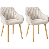 Goeurvant Juego de 2 sillas de Comedor Beige con reposabrazos de Lino, sillas de Comedor, Silla de salón, Silla de Cocina