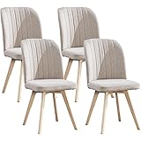 BenyLed Juego de 4 Sillas de Comedor Modernas con Asiento Tapizado y Patas de Madera de Haya Ideales para Comedor, Cocina, Sala de Estar, Dormitorio (Blanco)