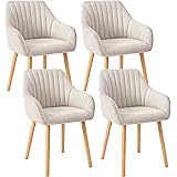 Goeurvant Juego de 4 sillas de Comedor Beige con reposabrazos de Lino, sillas de Comedor, Silla de salón, Silla de Cocina